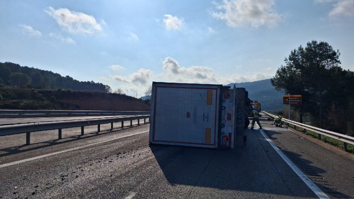 Bolcada d'un camió a la C-25, a Sant Pere Sallavinera