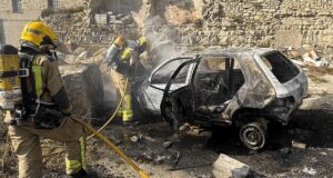 Vehicle calcinat a Montmaneu: incendi espectacular a tocar de l’N-II mobilitza els Bombers