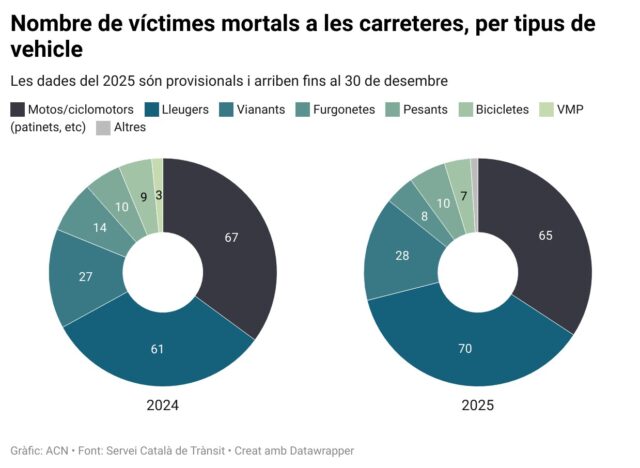 En aquest sentit, ha remarcat que l’any passat es va aconseguir una disminució global del 21% respecte al 2019. Si no hi ha més sinistres mortals en les últimes hores d’aquest any, el 2025 es tancarà amb una rebaixa del 21,6% respecte a l’últim any prepandèmic tenint en compte tots els tipus de vies.